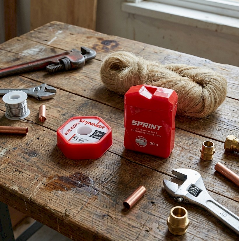 - Сантехническая нить SPRINT 50 м и катушка 50 м