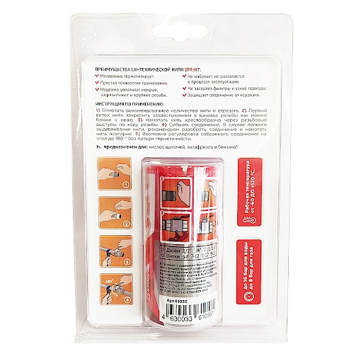 Эта нить для сантехнических соединений SPRINT хорошо ложится на любую, даже не подготовленную резьбу — ей не страшны замасленные, мокрые и загрязненные поверхности.